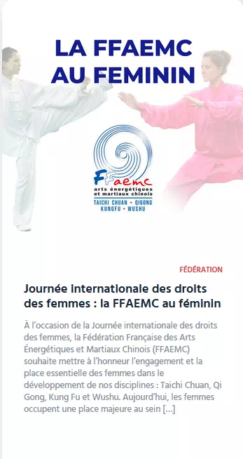 Le T’ai chi Chuan aide celui qui le pratique, à développer un contrôle dynamique mental sur son corps, ainsi qu’une grande maîtrise de sa vitalité. Le Tai Chi Chuan est inscrit au patrimoine immatériel de l'humanité.