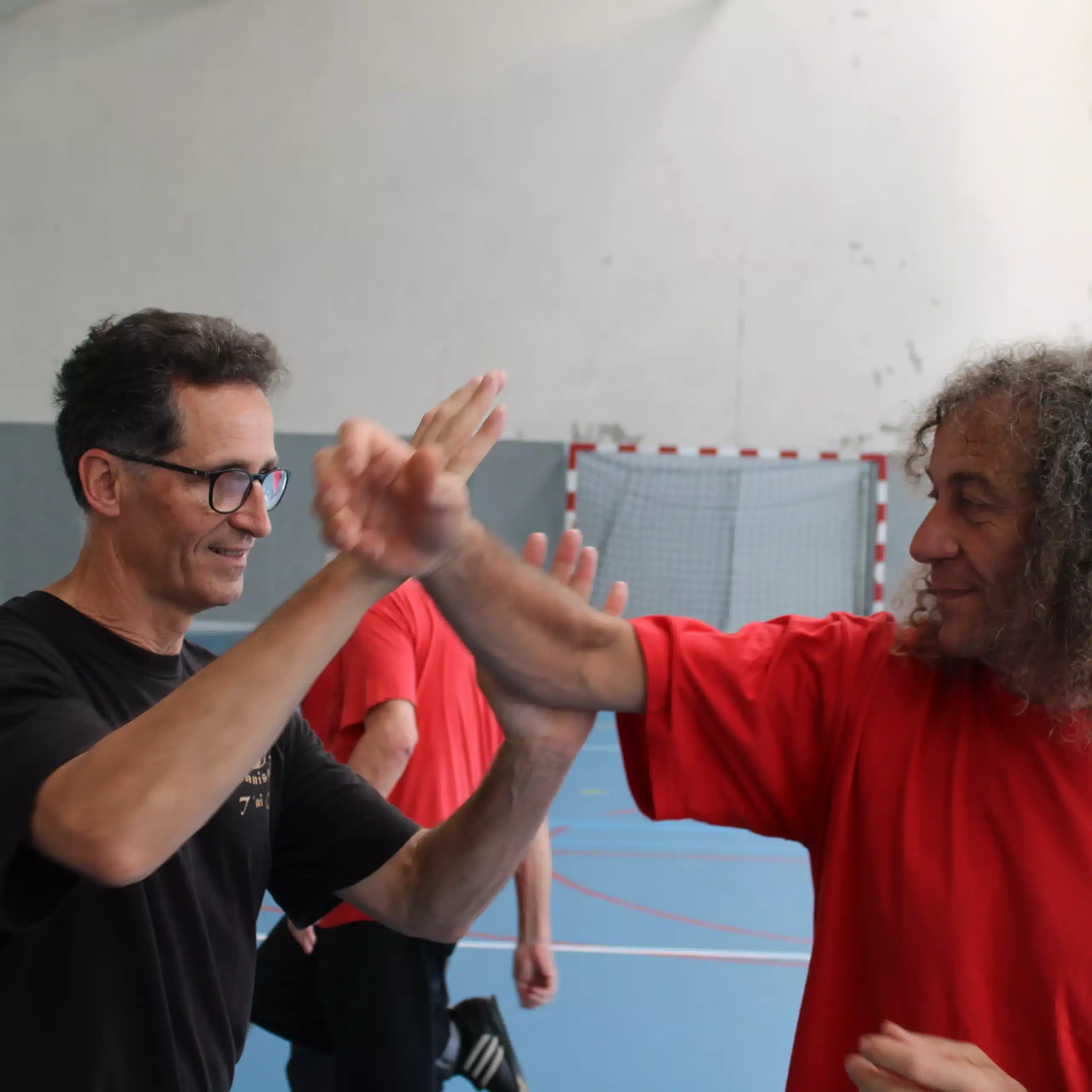 Cela permet d’explorer les aspects multiples du Feng Shou, comme les évasions, les blocages, les amenées au sol ,les coups de pied de manière habile et sans risque pour le pratiquant.