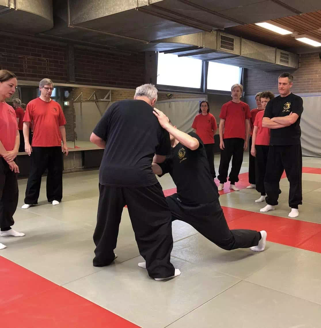 Le Feng Shou utilise le rythme dans les exercices, où deux partenaires s’opposent en avançant et en reculant alternativement dans un échange dynamique.