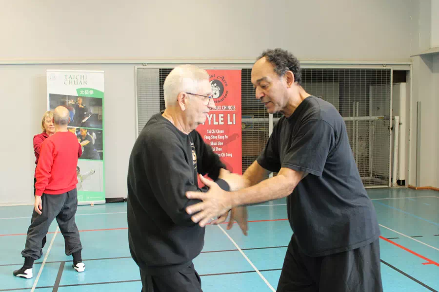 Le Samedi 27 personnes présentes pour débuter la journée par un exercice de Kai Men Nei Gong , Kai Men signifiant « Porte Ouverte » toujours pour sensibiliser les participants aux principes sous-jacents du style Li et tous ces petits détails qui font la différence et la pertinence du travail accompli. Puis ensuite l’application de ces principes de base ( les Quatre coins, les Huit Portes, les 9 points de contact) à la forme à Mains Nues. Nous avons terminé cette journée du Samedi par une sensibilisation aux Applications martiales de la Forme à Mains nues.